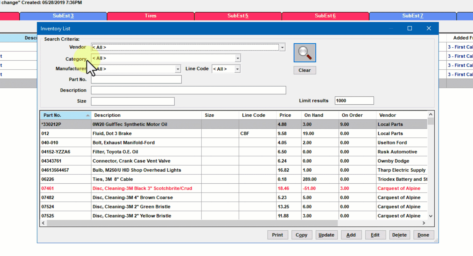 Shops often sell the same or similar jobs daily. Using our canned job function will allow you to quickly prepare an estimate/invoice for your customer giving you back valuable time. Brake jobs, F/I service, transmission service, alignments and more!
